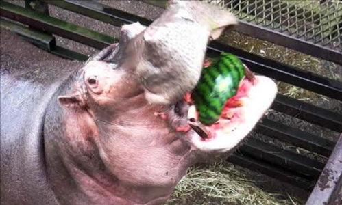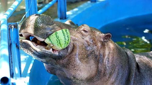 其实,河马吃瓜并不是什么稀奇事。河马是杂食性动物,它们的食物包括水草、树叶、果实等。在非洲,河马经常会吃瓜,因为瓜类富含水分和营养,对它们来说是一种很好的食物。不过,河马吃瓜的时候,确实会有些尴尬,因为它们的嘴巴太大,有时候会不小心把瓜咬破。